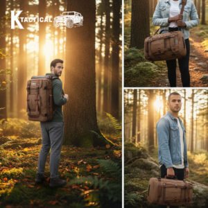 Designed with a large 22L capacity and multiple compartments, it combines practical versatility with a bold, vintage-military aesthetic. Whether carried on the back, by its reinforced handles, or converted into a travel duffel, this backpack offers adaptability for every journey.