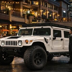 Exclusive 2020 build (1 of 1), blending HMMWV strength with urban sophistication. Features Chrysler Pacifica seating, 40-inch lifted tires, and a Detroit 6.5 Turbo Diesel with intercooler at 350 HP.