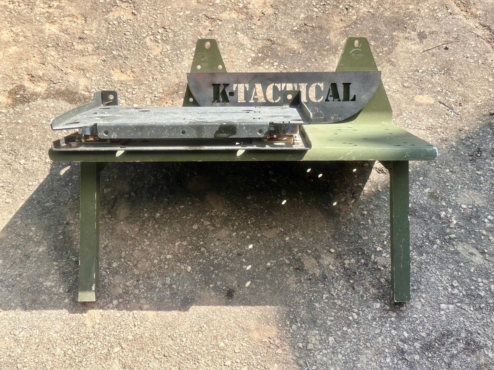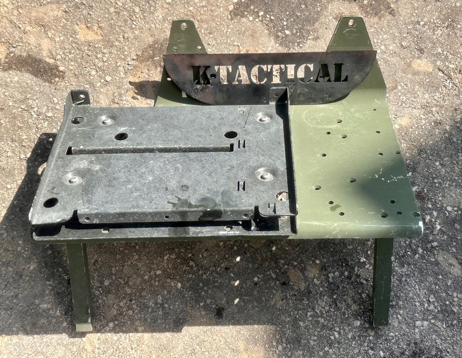 Original HMMWV radio mounting base with shock isolation system, used in military communication-configured Humvee vehicles.