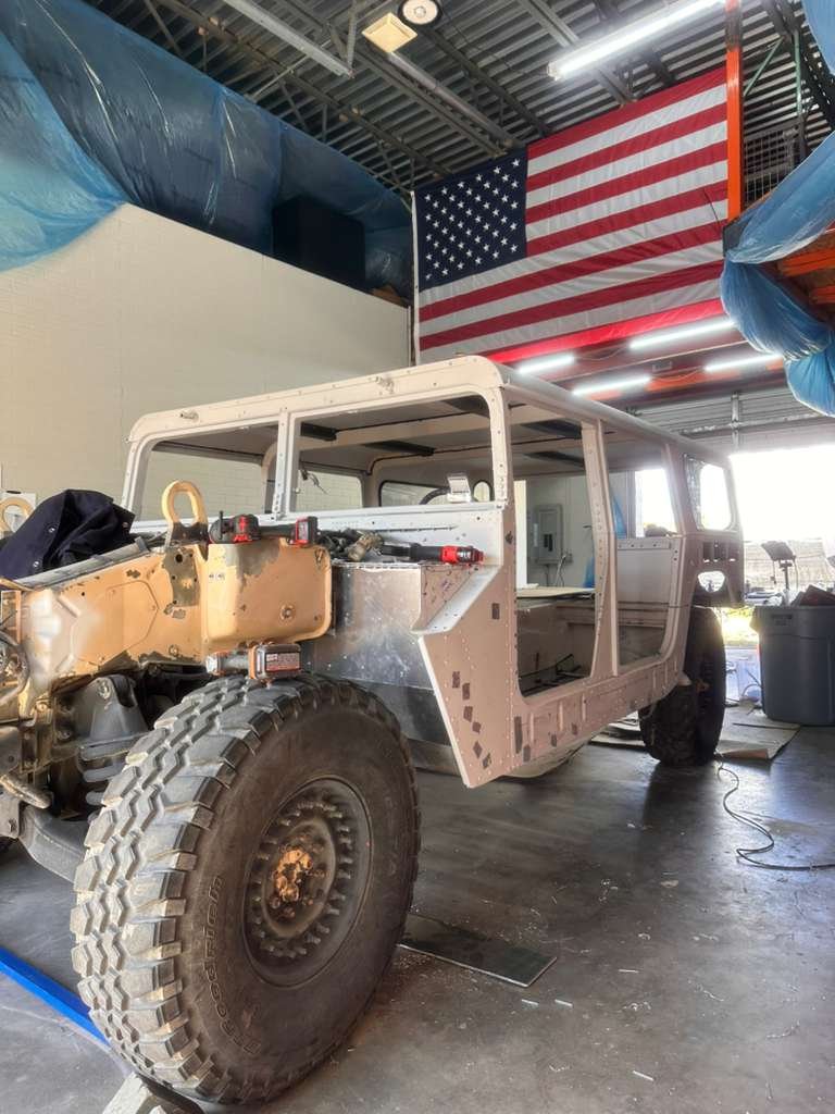 Exclusive 2020 build (1 of 1), blending HMMWV strength with urban sophistication. Features Chrysler Pacifica seating, 40-inch lifted tires, and a Detroit 6.5 Turbo Diesel with intercooler at 350 HP.