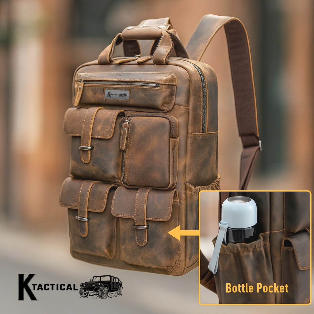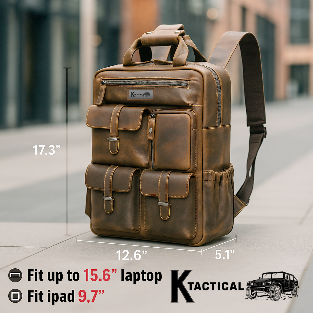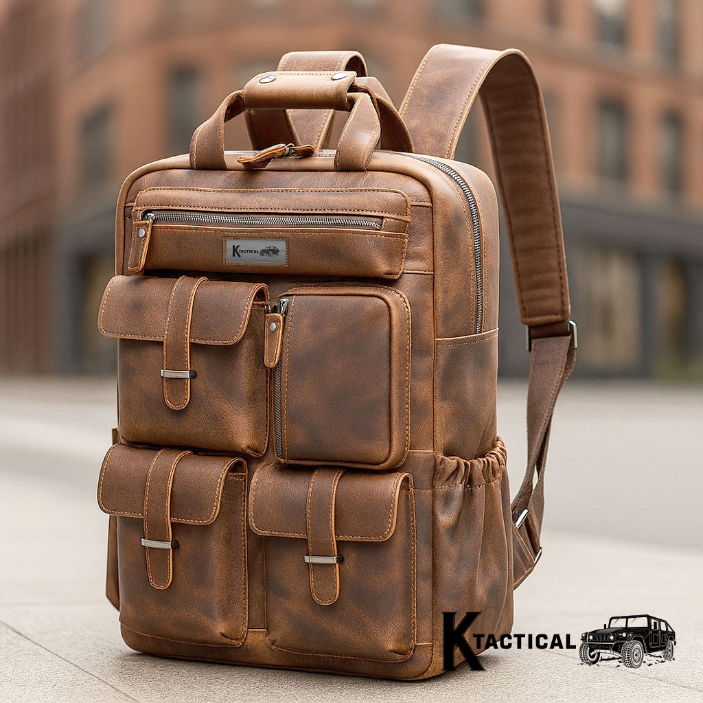 A masterpiece of rugged sophistication, the K-Tactical Heritage Expedition Backpack embodies the spirit of timeless craftsmanship. Handcrafted from natural, full-grain leather, every stitch is sewn by hand on old artisanal machines, preserving the authentic character of traditional leatherwork.