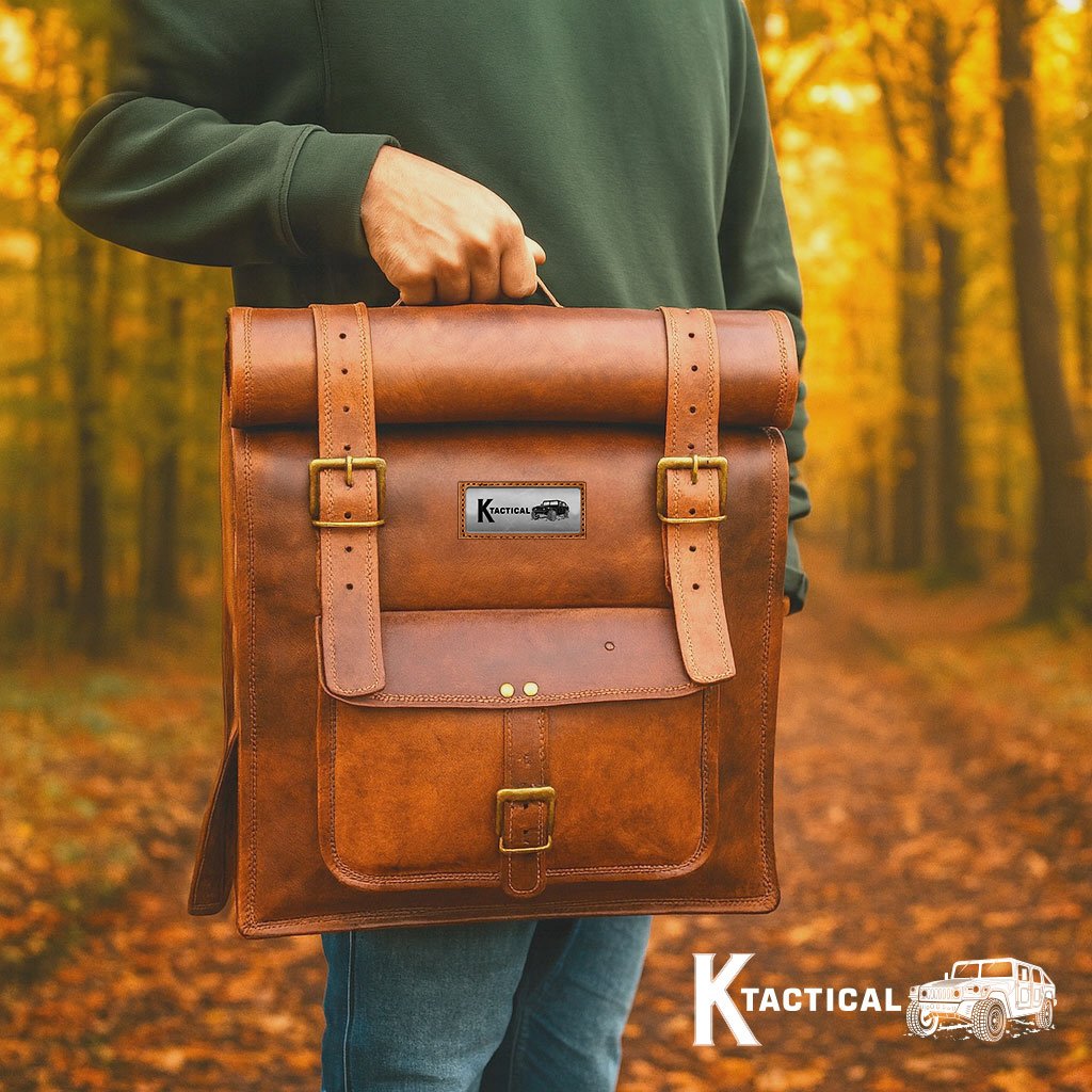 A masterpiece of rugged sophistication, the K-Tactical Heritage Expedition Backpack is handcrafted from natural full-grain leather, exuding timeless character and durability. Each piece is old-fashion artisanal made, carefully sawn by hand with the precision of a vintage sewing machine, celebrating the tradition of true craftsmanship.